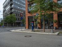 Modern architecture in a German city. Urban design with residential homes lining the asphalt road. Cloudy day in Europe adds character to the cityscape.