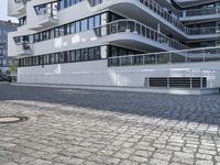 This photo showcases an impressive building in Berlin, Germany. The structure features several stories of glass windows, providing a modern and stylish look. It is a prime example of the city's contemporary architecture. This residential apartment building is located in a vibrant residential area. The building stands out with its sleek facade, constructed using concrete and glass materials. Surrounding the building, you can see the bustling city life of Berlin, highlighting its urban design. This property is part of a mixed-use development, incorporating both residential and commercial spaces. The photo was taken during the day, capturing the building's stunning presence against the backdrop of the city streets, including cobblestone roads. This scene represents the dynamic energy of both business and residential aspects of Berlin, making it an excellent choice for various design and architectural projects. Discover the beauty and sophistication of European urban design with this captivating photo.