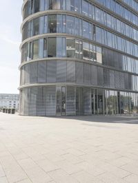This image showcases the modern architecture of a large building in Duesseldorf, Germany. The building features a mix of residential and commercial spaces with a spacious open plaza and courtyard. The facade, made of concrete and glass, is adorned with numerous windows that allow natural light to filter through. The clear sky above adds to the beauty of the structure. This building serves as the corporate headquarters for a prominent company, combining functionality and style. Its design reflects the urban landscape of Duesseldorf and represents the contemporary architecture of Europe.