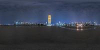 A stunning cityscape of Zhengzhou, China at night. The modern architecture of high-rise buildings reflects on the water, creating a mesmerizing view. The clear sky enhances the beauty of this metropolitan area.