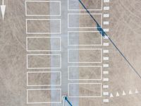 Aerial view of a modern architecture building in Holland. The building features a high facade with composite materials and rectangular lines. The surrounding urban design includes a parking lot and open spaces.