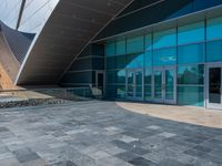 Modern architecture at its finest in the heart of Las Vegas' business district. This office building stands out with its sleek design, large glass windows, and a stunning curved roof made from granite blocks.