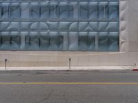 This image showcases a windowless building with modern architecture, located in the vibrant city of Los Angeles, California, USA. The building's facade features composite materials and a rectangular profile. The flooring is made of wood, contrasting with the surrounding asphalt road and concrete road surface. The architecture exhibits symmetry and a sleek, urban design. The grey building stands out in the business district, adding an artistic touch to the city landscape. The image captures the beauty of this daylit building, as if seen on television.