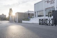 This stock photo showcases the front end of a business building located in North York, Ontario. The building features a modern architectural design with a clean facade. The paved street and trees in the background add to the overall urban aesthetic. This image captures a sunny day, with rays of sunshine illuminating the scene and casting shadows. It reflects a bustling city with shops and storefronts, making it a perfect representation of the vibrant North York community. The landscape and road surface are well-maintained, highlighting the area's attention to detail and real estate value. With its combination of architectural brilliance, urban ambiance, and commercial charm, this photo is ideal for showcasing modern architecture in North York, Canada.