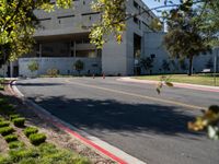 Explore the modern architecture amidst the suburban streets of Los Angeles, California. Clear skies dome the campus area, showcasing a day filled with architectural elegance and asphalt roads.