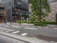 This image captures the bustling city life in Tokyo, Japan. The modern architecture and urban design are showcased through the presence of office buildings and storefronts. A busy road with crosswalks can be seen, indicating the urban landscape and the vibrant business district. People are seen crossing the road, reflecting the dynamic city atmosphere. Restaurants and shops line the streets, offering a variety of options to eat out and shop. This photo perfectly captures the essence of city life in Tokyo, with its vibrant and fast-paced urban environment.