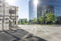 This image showcases the modern architecture and urban design of a high-rise building in Toronto, Canada. The clear sky provides a bright backdrop for the sleek lines and low-rise buildings in the surrounding area. The road surface and asphalt lead into the business district, highlighting the bustling urban environment. This photo captures a typical day in Ontario, where the metropolitan area is filled with skyscrapers and public spaces. The mix of residential and office buildings creates a dynamic human settlement. Explore the architecture and city life of Ontario in this stunning image.