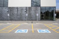 the car parking spaces have markings indicating wheelchairs and no parking signs around them, including in the number