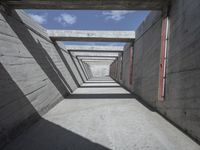 This image captures the modern architecture of Spain in Tenerife, Europe. The building showcases a sleek design, with clean lines and a surface made of concrete. The straight walkway and stairs lead down a road, creating a symmetrical and futuristic look. The light and shadow play across the surface, adding depth and dimension. The clear blue sky serves as a backdrop, highlighting the unique shape of the building. This photo offers a glimpse into the innovative infrastructure and architectural beauty of Tenerife, Spain.