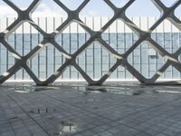 A modern architectural marvel in Shenzhen, China. Its sleek facade and futuristic design stand out against the urban landscape. Wet concrete road surfaces add to the contemporary feel. A striking combination of line, iron, and metal.