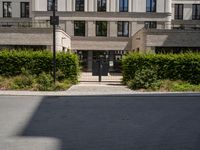This stock photo showcases modern architecture in Berlin, Germany. The image features a clock on a pole in front of a building, surrounded by bushes and hedges. The city's vibrant atmosphere is reflected in the dynamic architecture and well-designed road infrastructure. The residential area provides a comfortable and picturesque environment, with manicured grass and beautiful houses. The photo captures the essence of urban design and city life in Berlin, a bustling metropolis in Europe. The composition is enhanced by the play of shadows and the presence of shrubs and vegetation. The image exemplifies the blend of real estate and nature in the city, making it an ideal representation of modern and urban living.
