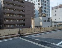A view of a modern, asphalt road in Tokyo, Japan. The road is lined with Armco barriers, showcasing the modern architecture of the city. A typical day in the urban landscape of Tokyo, Asia.