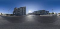 Urban cityscape of Berlin, Germany. Modern and classic architecture blends in the city. Hard shadows cast on the asphalt roads under clear European skies. A sunny day captures the essence of city life.
