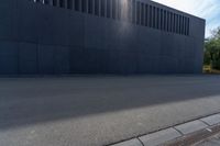 Modern urban architecture in Europe, showcasing a concrete wall of an industrial factory. The city's bustling life is reflected in the storefronts and asphalt roads. A glimpse into Germany's manufacturing and urban design.