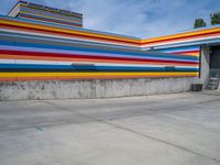 A modern factory in Berlin, Germany, with open space and industrial architecture. Multicolored clouds fill the clear European sky. Urban manufacturing hub with concrete surfaces and vegetation.