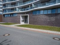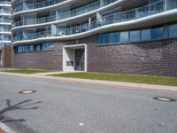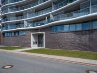 Modern high-rise condominium building in Bremen, Germany. The brick facade with large windows creates a striking urban design. Located in a vibrant residential area, the building stands out amidst the city's bustling streets.