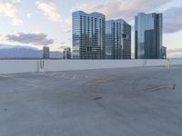 A modern high-rise condominium building in Las Vegas, Nevada. Its sleek, concrete architecture blends seamlessly with the urban design. Clear skies highlight the reflective windows and the open space of the parking deck.