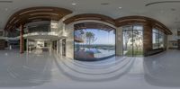 Inside View of a Modern House with Glass Walls and Balcony