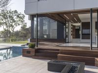 This stunning modern house in Los Angeles, California combines sleek architecture with the beauty of natural wood paneling. Situated on the edge of a small pool area, the home boasts large windows and a welcoming facade. With its spacious rooms, beautiful interior design, and inviting porch and backyard, this property offers a luxurious and comfortable lifestyle. The wood floors throughout the villa add warmth and elegance to the contemporary space. Ideal for those seeking a stylish and sophisticated home in a desirable residential area of Los Angeles.