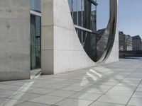 This stock photo showcases a large silver building with a rounded windowed concrete facade located on a side street in London, England. The modern architecture and sleek design of the building make it a standout in the cityscape. The open spaces and ample daylight create a pleasant working environment. The structure, made of composite materials such as concrete and metal, blends seamlessly into the urban surroundings. The photo perfectly captures the vibrant city life of London, with its bustling business district and architectural wonders. This image is ideal for illustrating concepts related to architecture, cityscape, urban design, business, and Europe.