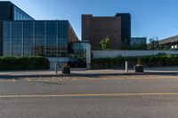 This stock photo showcases a stunning modern office building in the bustling city of Toronto, Canada. The white building with lots of windows stands tall near a street, and is surrounded by a beautiful bench, fenced-off area, and lush greenery. With its sleek facade and composite material construction, this is a prime example of contemporary architecture. The surrounding asphalt road and curb add to the urban design of the area. The clear grey sky highlights the architectural beauty of the building and the business district it belongs to. Perfect for any project related to real estate, urban development, or business in Toronto.