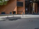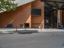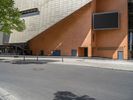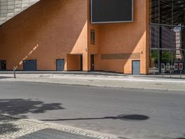 A modern urban design in the heart of Berlin, Germany. The city streets are lined with sleek modern architecture casting long hard shadows. This venue is the epitome of city life in Europe.