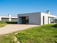 This stunning modern villa is located in Holland, Netherlands. Situated in a residential area, the property offers open space and a beautiful view of the clear sky. The house is surrounded by well-maintained grass and vegetation, with a gravel path leading through the property. The architecture is modern and stylish, with large windows allowing for plenty of natural light inside. The house stands alone on a land lot, offering privacy and tranquility. Whether you're looking for a residential property or a vacation home, this villa is a perfect choice. It truly showcases the beauty of modern architecture in Europe.