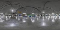 the inside of a warehouse space is filled with white painted floors and lots of bags