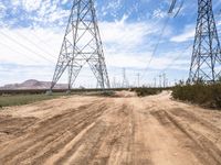 Experience rural California's dirt roads under a clear sky in Los Angeles. The Mojave landscape, with its electric windmills and mountain backdrop, offers stunning scenic views of the USA's desert terrain.