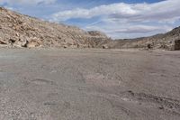 This stock photo features a low angle view of a motorcycle parked on a desert road in front of a magnificent mountain range in Utah, USA. The landscape is characterized by red rock formations, rocky cliffs, and sandy soil. The open space and rugged terrain provide a perfect off-road track for recreational activities. The clear blue sky with scattered clouds adds to the natural beauty of this remote location. The image showcases the wild and untamed nature of the desert, making it ideal for various creative projects related to travel, adventure, or nature exploration.