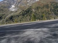A person rides a motorcycle on a road near a mountain side in Austria. The clear sky and beautiful landscape of Europe create a stunning scene. The asphalt road winds through the mountainous terrain, offering a thrilling journey for riders. This daytime adventure allows motorcyclists to connect with nature and appreciate the majestic mountains.