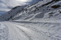 A scenic landscape in Italy with an asphalt road winding through the mountain terrain. The snow-capped mountain range creates a stunning backdrop under the clear blue skies. A perfect day to explore the highlands of Europe.