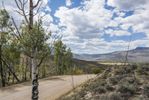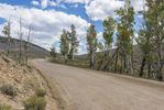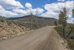 A rugged dirt road winds through the wilderness, surrounded by towering mountains and lush forests. The road curves and twists, offering breathtaking views of the landscape. This is a perfect destination for adventure seekers and nature enthusiasts.