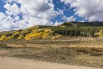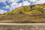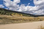 A scenic road through the highlands, surrounded by rugged mountains and lush vegetation. The autumn colors of the leaves add a touch of vibrancy to the landscape. Two people capture the moment with a selfie on a motorcycle.