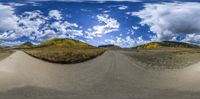two people taking a selfie on a motorcycle through a 360 - lens lens with the road in the foreground