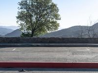 A scenic view of a winding mountain road in California, surrounded by nature. The clear sky and sunshine enhance the beauty of the landscape. An idyllic spot for recreational activities with a parking lot for convenience.