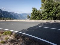This stunning stock photo showcases a scenic mountain road in Spain. The road, made of smooth asphalt, winds its way through the breathtaking landscape of highlands and mountain ranges. Surrounded by lush vegetation and tall trees, the road offers a mesmerizing view of the Balearic Islands in the distance. The clear blue sky adds to the overall beauty of the scene. This picturesque location is a perfect example of the amazing nature and infrastructure found in Europe.