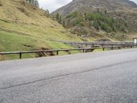 A scenic road meandering through the picturesque landscape of Austria. The image depicts a motorcycle traveling on an asphalt road near a fence and stone bridge, offering glimpses of the stunning mountain range and a valley below. The water glistens in the sunlight, adding to the beauty of the scene. The cloudy sky enhances the moody atmosphere of the day, creating a gloomy yet captivating ambiance. This photograph captures the wild and natural beauty of Austria, showcasing its mesmerizing terrain and inviting exploration of its charming mountain roads.