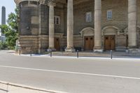 This image showcases the classic architecture and urban design of Toronto, Canada. The photo captures a glimpse of the city life with its historic buildings and museums. The road surface and asphalt leading to the museum entrance create a dynamic composition. The facades of the buildings line the street, creating a visually pleasing scene. The architectural columns and arches add a touch of elegance to the public space. This photo represents the blend of classic and modern architecture in the bustling city of Toronto.