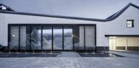 modern art in a contemporary glass walled space with modern style fountain at entrance of building