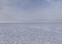 A calm and serene landscape in Salt Lake City, Utah. The lone snow-covered lake contrasts with the snowy surroundings and cloudy skies. The open space and calm atmosphere create a serene and peaceful scene.