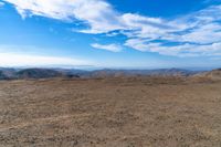 This is an image of an open landscape with a view of mountains and hills. The terrain consists of sand, dirt, and grass, creating a natural and rugged environment. The sky is filled with fluffy cumulus clouds, providing a picturesque backdrop. In the foreground, there are trees, adding an element of nature to the scene. The overall view overlooks the highland, with a surface that includes gravel and slopes. This photo captures the beauty and serenity of the untouched landscape, allowing viewers to appreciate the wonders of nature.
