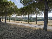 This image captures the beauty of a rural road in Tuscany, Italy. The road is surrounded by lush grass, trees, and a stunning landscape. The clear sky overhead adds to the idyllic scene. The rugged terrain and natural environment of Tuscany are on full display here. This photo represents the peaceful and rich countryside of Italy, making it the perfect image for showcasing real estate or promoting the natural beauty of Tuscany. Whether you're looking for a land lot or a serene getaway, this image captures the essence of rural life in Italy.