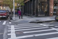 This image captures the essence of a city street in New York, USA. The classic architecture of the buildings in Soho, Manhattan provides a stunning backdrop. Pedestrians can be seen crossing the road at the zebra crossing, while vehicles and bicycles navigate the asphalt lanes. The bustling urban scene is lined with shops and storefronts, creating a vibrant atmosphere. This photo represents the energy and diversity of urban life in New York City.
