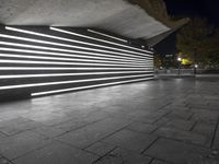 A snapshot of the modern architecture of New York City at night. The monochromatic cityscape showcases the sleek lines and structures, illuminated by artificial lights. The motion blur and light streaks add a sense of urban energy.