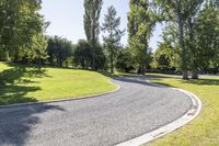 A scenic road in South Island, New Zealand winding through lush forests and green grassy landscapes. The clear sky adds to the natural beauty of this picturesque public space.