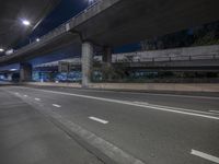 Night Cityscape: Asphalt Road and Bridge in an Urban Setting