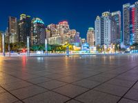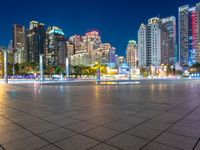 This image showcases the vibrant cityscape of Taiwan, specifically in Taichung and Taipei. The modern architecture and artificial lights create a stunning scene at night. The clear sky contrasts with the dark surface of the plaza, illuminated by street lights. The bustling city streets are lined with pavers, adding to the urban atmosphere. This photo captures the essence of Taiwan's urban life, showcasing the blend of traditional and modern elements in its architecture and cityscape.
