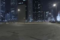 A night scene in downtown Chicago, Illinois. The city skyline is illuminated by artificial lights, creating a stunning cityscape with motion blur and light streaks. The high-rise buildings and urban atmosphere make it a true metropolitan area.