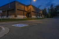A night scene in Toronto, Ontario. Street lights illuminate the urban landscape, casting a glow on the road surface and buildings. Trees and open spaces provide contrast to the artificial light. Clouds darken the sky.